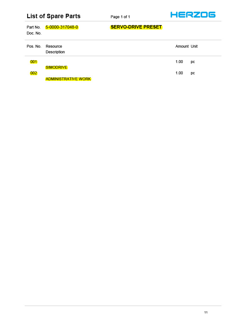 HERZOG SPARE PART LIST